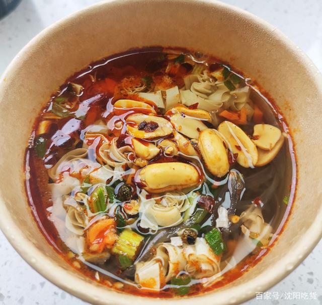 酸辣粉里面是深色的紅薯粉,豆皮、麻辣花生一放,酸辣過(guò)癮,在工作室加班的時(shí)候來(lái)一碗,別提多幸福啦!